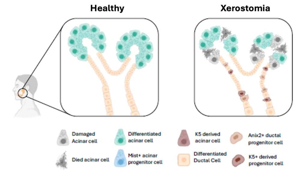Xerostomia affects 2 billion people worldwide, and is caused by radiation therapy, certain drugs, Sjogren syndrome and aging. There are currently no effective or disease modifying treatments for dry mouth (saliva-inducing agents or saliva substitutes only provide temporary relief). There are also no reliable in-vitro models to evaluate drug efficacy. Our team is developing a clinically-relevant 3D model to evaluate AI-supported identification of drugs to rejuvenate salivary gland acinar cells as a strategy to treat dry mouth.